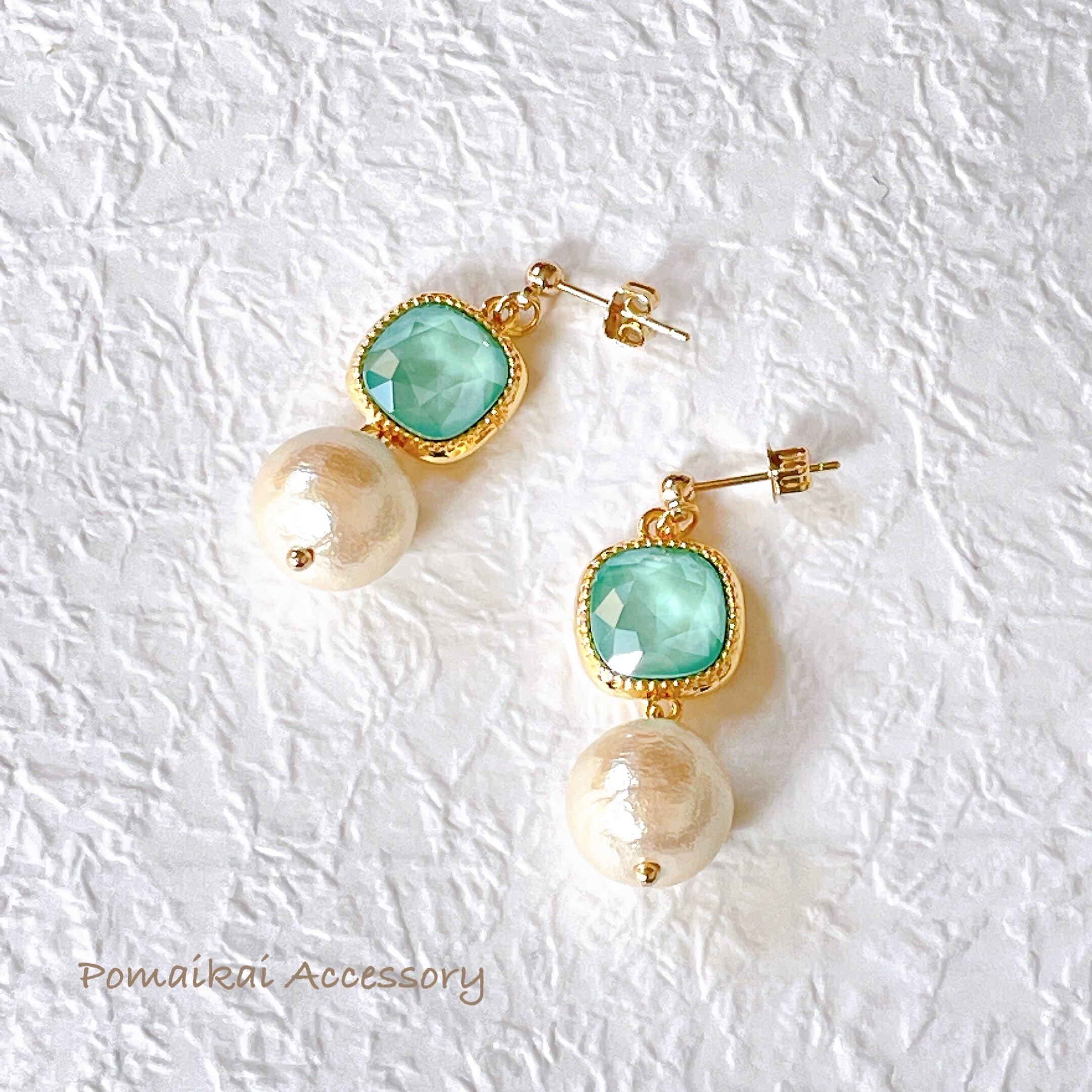金具には、洗練されたゴールドカラーを使用しています。パールはコットンパールです。