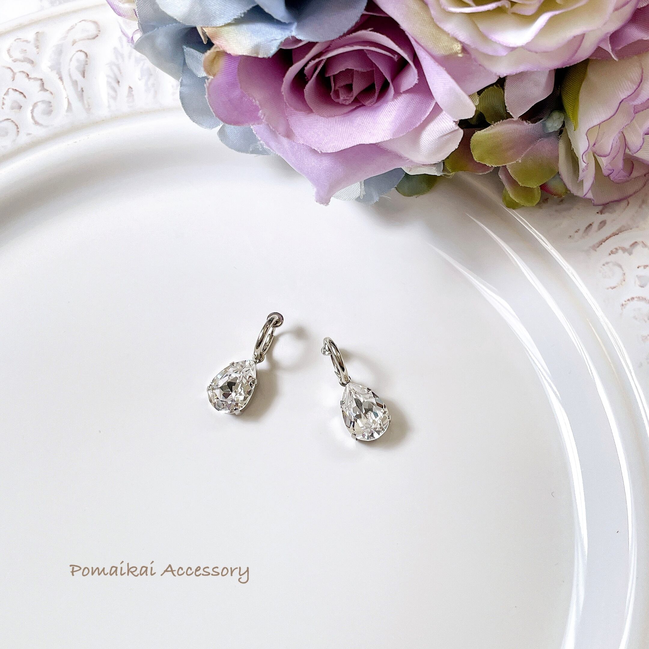スワロフスキーしずくフープイヤリングです。