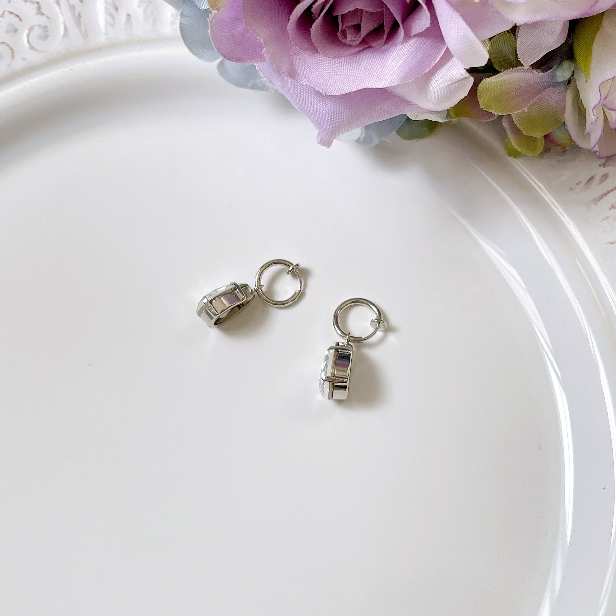 一粒のスワロフスキークリスタルが揺れるシンプルなデザインは、どんなスタイルにもぴったりなアクセントに。